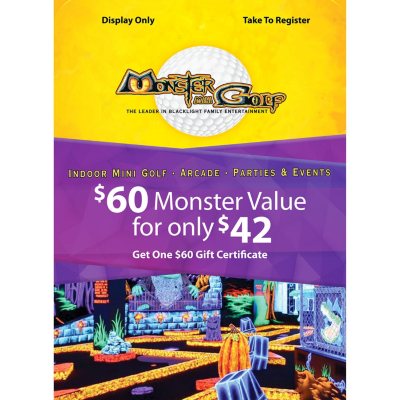 Monster Mini Golf 60 Value Gift Certificate Sam S Club